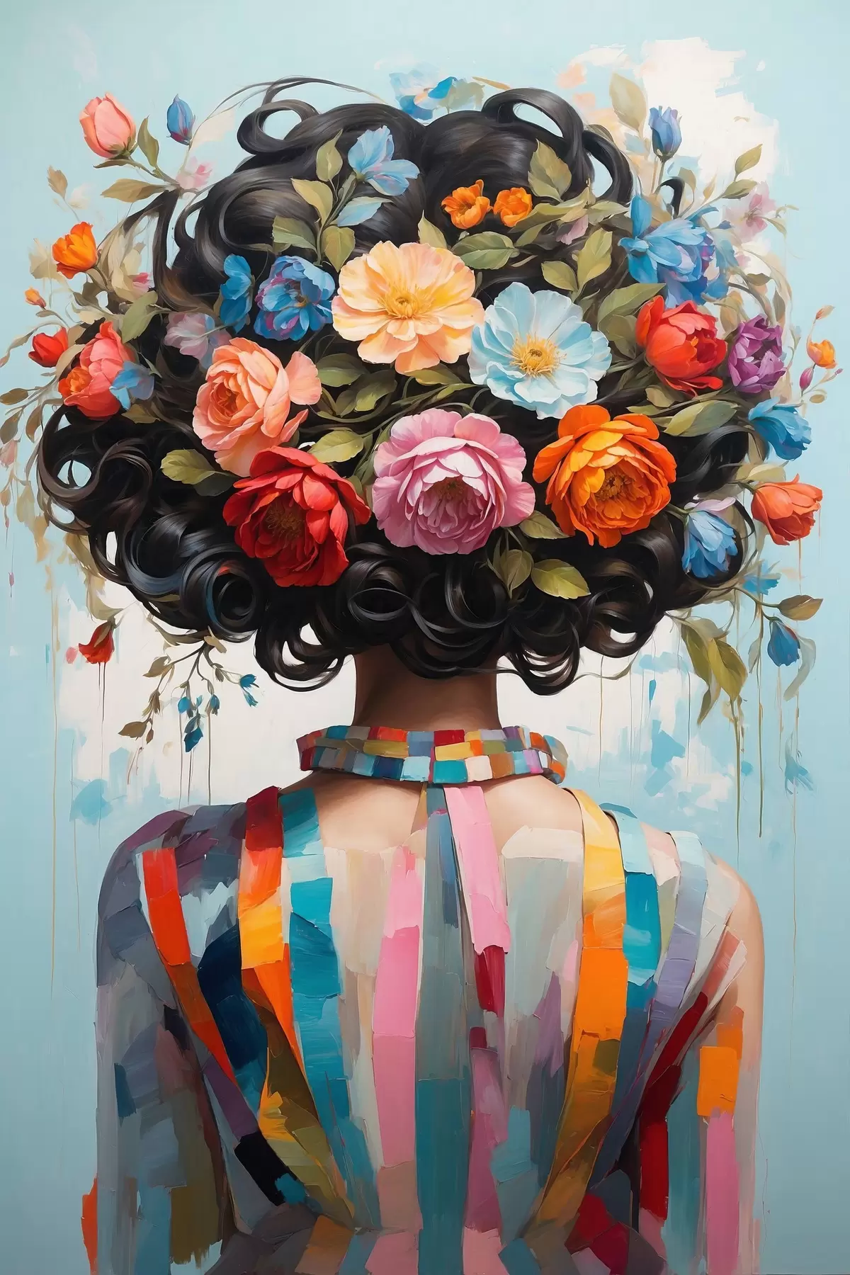 Plakatas Mergaitė su spalvinga suknele ir gėlėmis Ne f42524