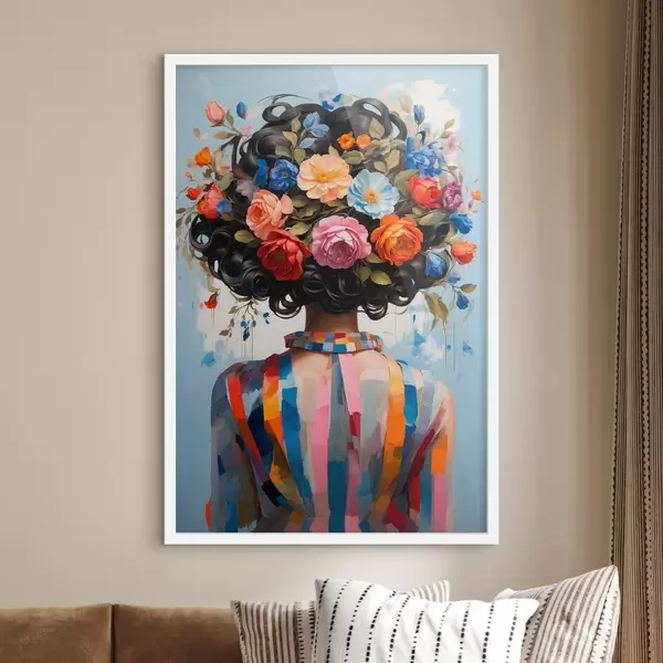 Plakatas Mergaitė su spalvinga suknele ir gėlėmis f42524