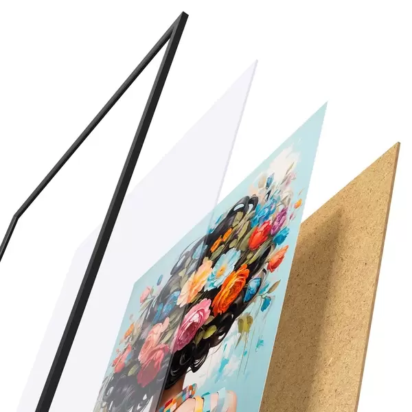 Plakatą sudaro rėmas, pleksiklas, atspausdintas vaizdas ir medžio drožlių plokštės pagrindas. Plakatą galima iš karto pakabinti ant sienos dėl kitoje pusėje esančių laikiklių.