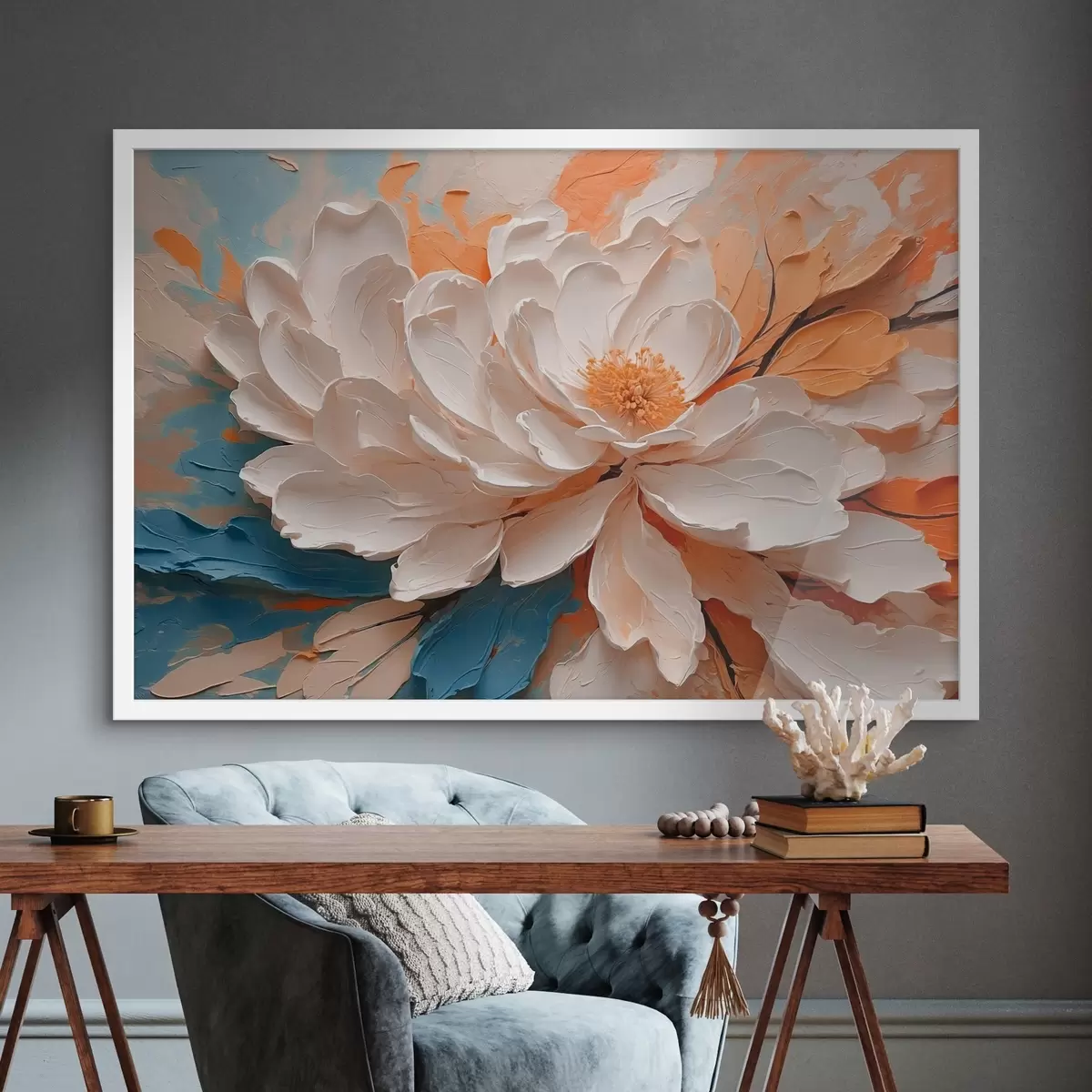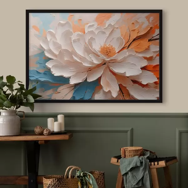 Plakatas Balta gėlė aliejinės tapybos stiliumi f42528