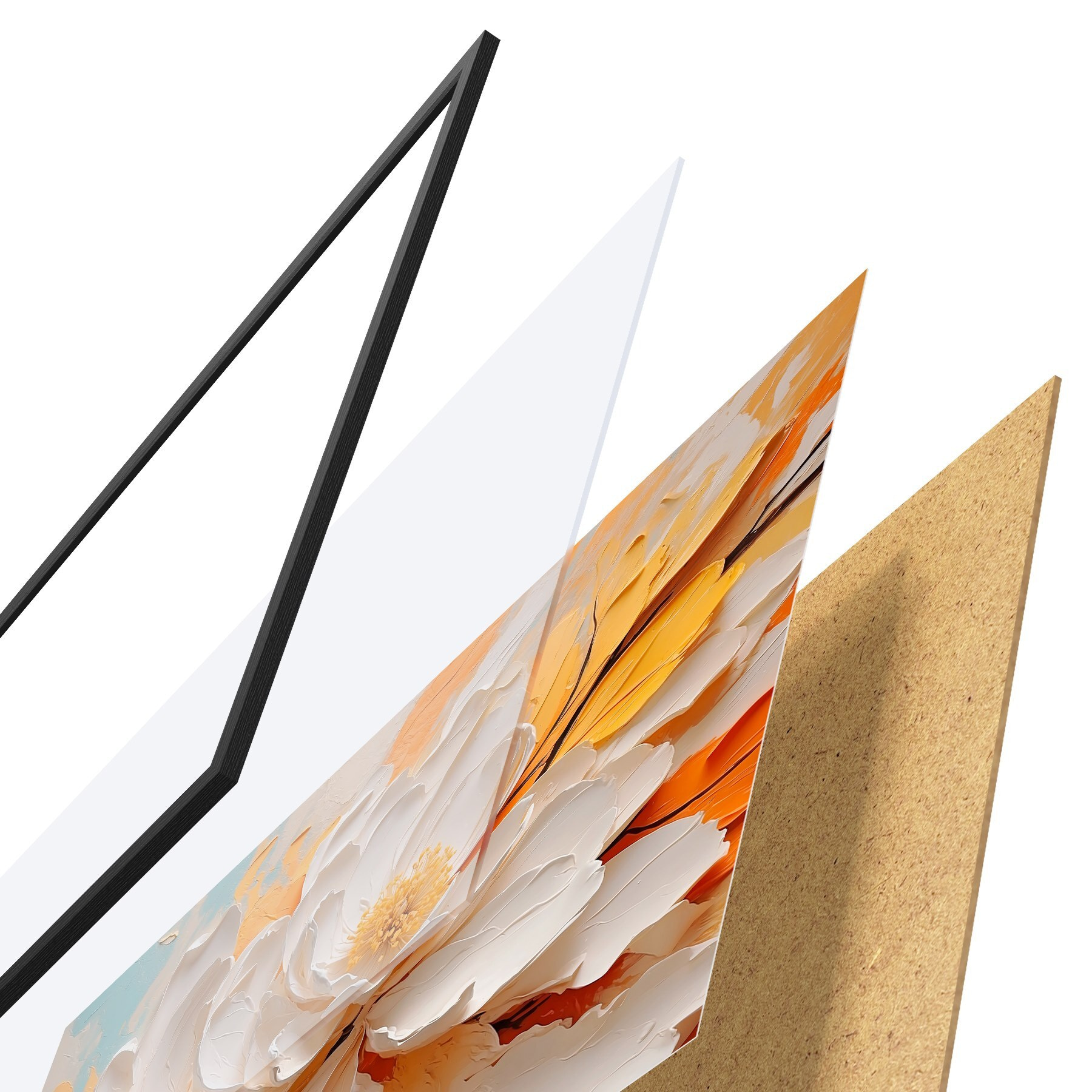 Plakatą sudaro rėmas, pleksiklas, atspausdintas vaizdas ir medžio drožlių plokštės pagrindas. Plakatą galima iš karto pakabinti ant sienos dėl kitoje pusėje esančių laikiklių.