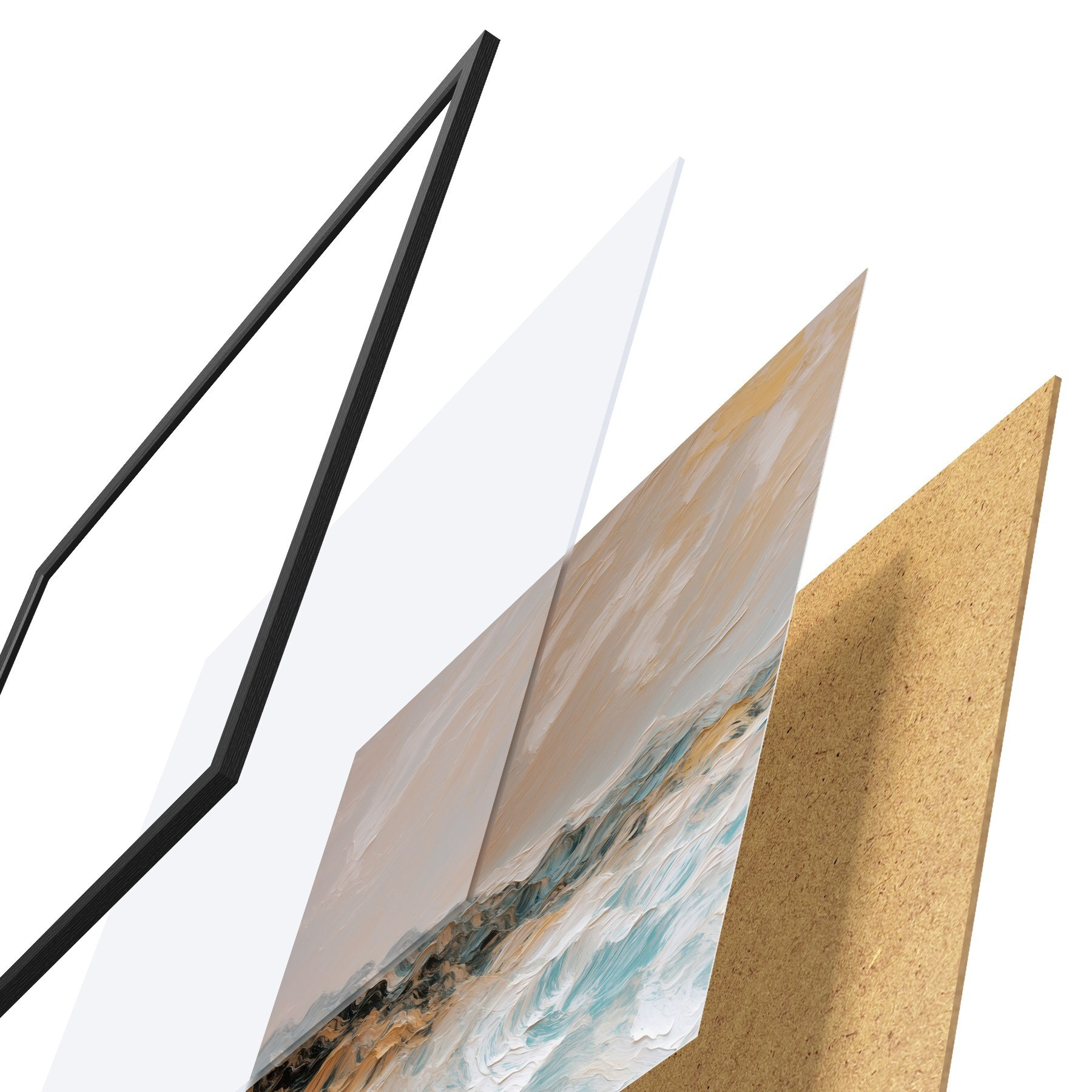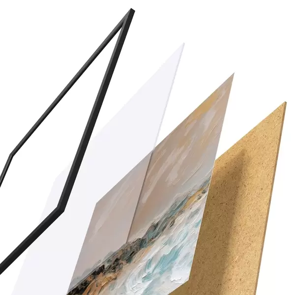 Plakatą sudaro rėmas, pleksiklas, atspausdintas vaizdas ir medžio drožlių plokštės pagrindas. Plakatą galima iš karto pakabinti ant sienos dėl kitoje pusėje esančių laikiklių.