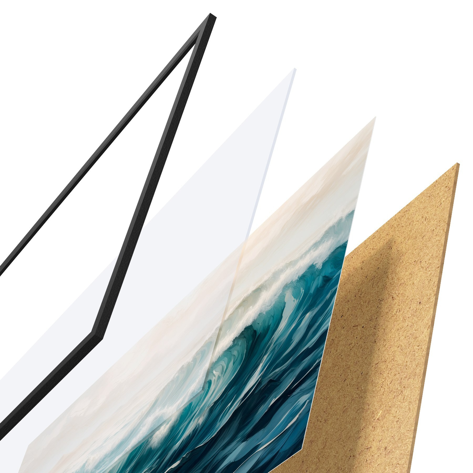 Plakatą sudaro rėmas, pleksiklas, atspausdintas vaizdas ir medžio drožlių plokštės pagrindas. Plakatą galima iš karto pakabinti ant sienos dėl kitoje pusėje esančių laikiklių.