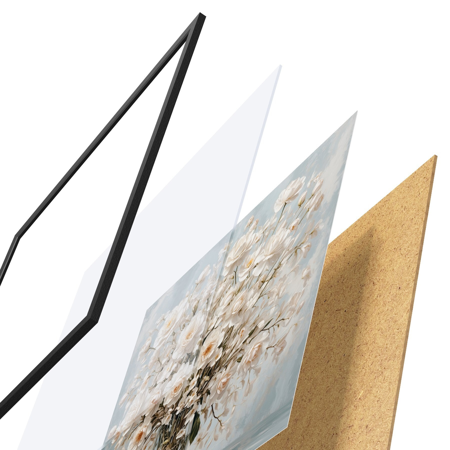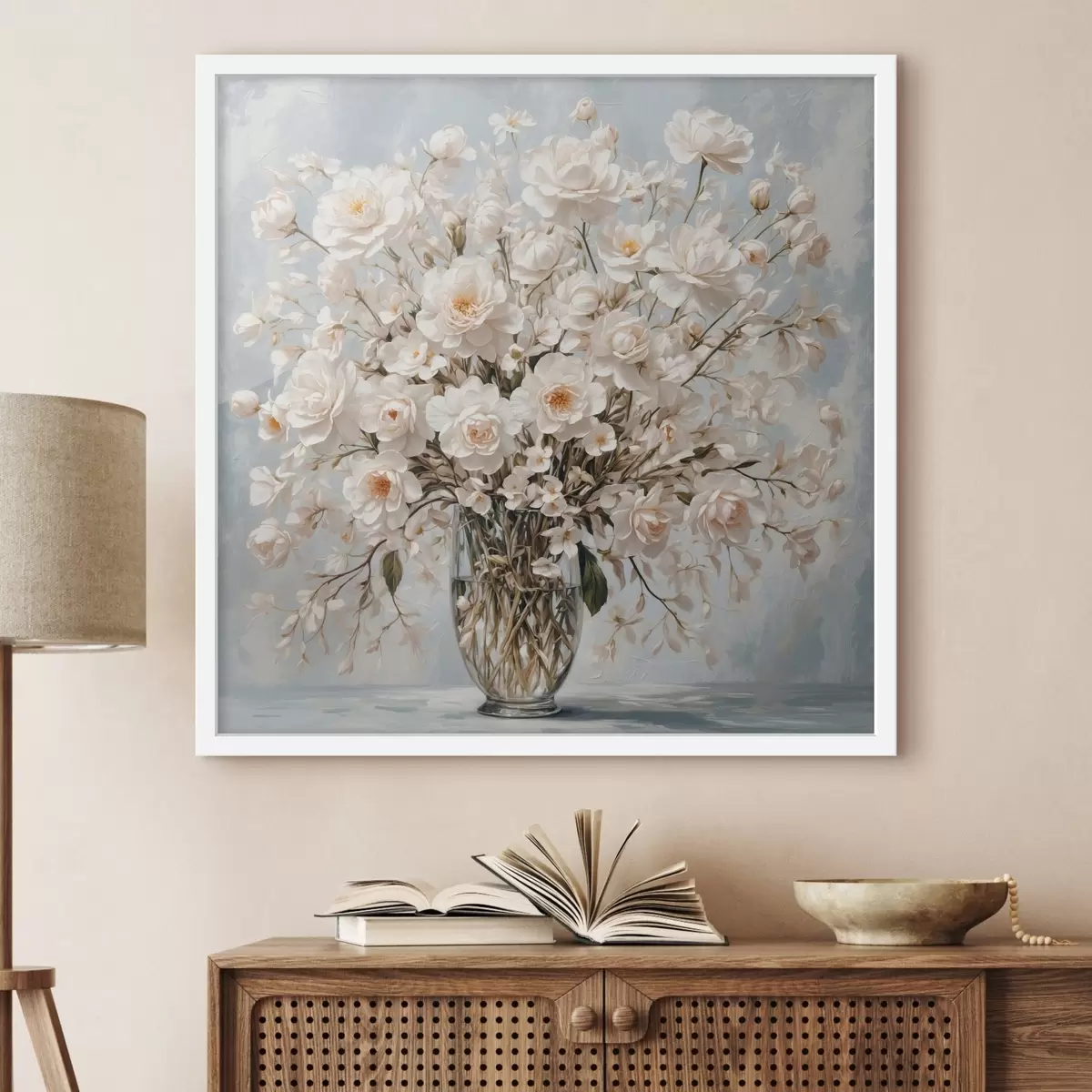 Plakatas Baltos gėlės skaidrioje vazoje akrilo tapybos stiliumi f42545