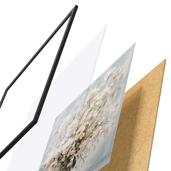 Plakatą sudaro rėmas, pleksiklas, atspausdintas vaizdas ir medžio drožlių plokštės pagrindas. Plakatą galima iš karto pakabinti ant sienos dėl kitoje pusėje esančių laikiklių.