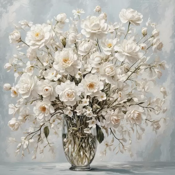 Plakatas Baltos gėlės skaidrioje vazoje akrilo tapybos stiliumi Ne f42545