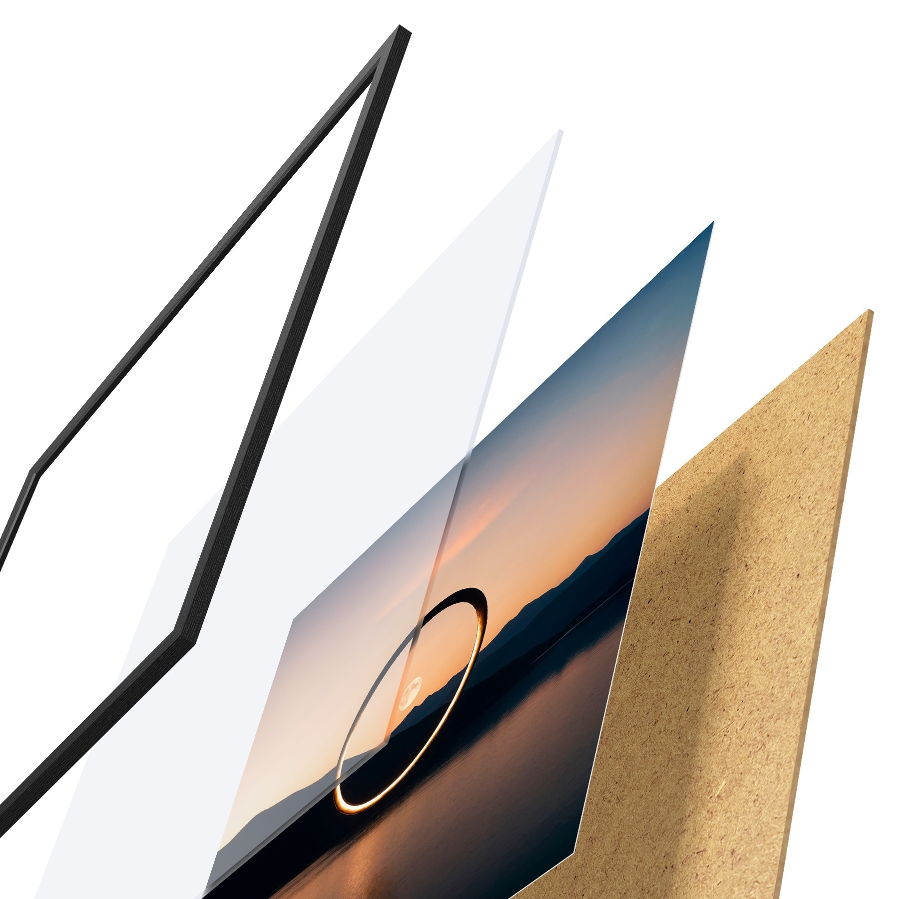 Plakatą sudaro rėmas, pleksiklas, atspausdintas vaizdas ir medžio drožlių plokštės pagrindas. Plakatą galima iš karto pakabinti ant sienos dėl kitoje pusėje esančių laikiklių.