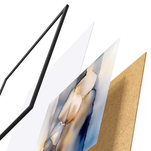 Plakatą sudaro rėmas, pleksiklas, atspausdintas vaizdas ir medžio drožlių plokštės pagrindas. Plakatą galima iš karto pakabinti ant sienos dėl kitoje pusėje esančių laikiklių.