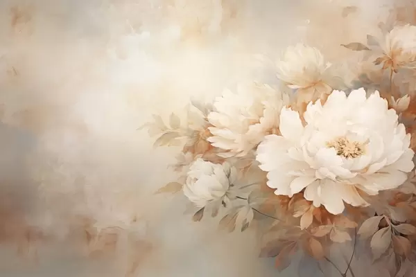 Plakatas Švelnūs pastelinių kreminių tonų bijūnai neryškiame fone sukuria švelnią ir romantišką nuotaiką. f42558
