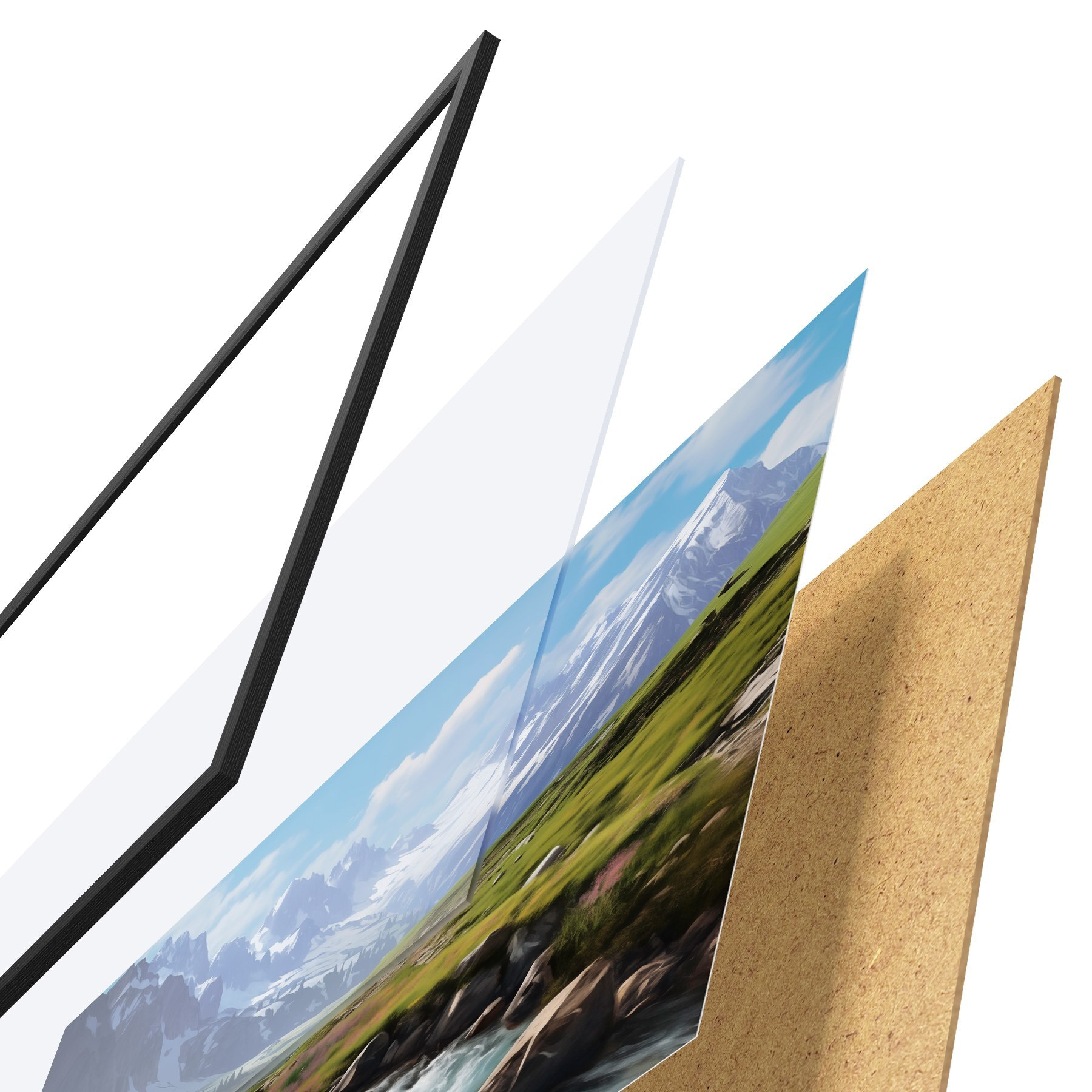 Plakatą sudaro rėmas, pleksiklas, atspausdintas vaizdas ir medžio drožlių plokštės pagrindas. Plakatą galima iš karto pakabinti ant sienos dėl kitoje pusėje esančių laikiklių.