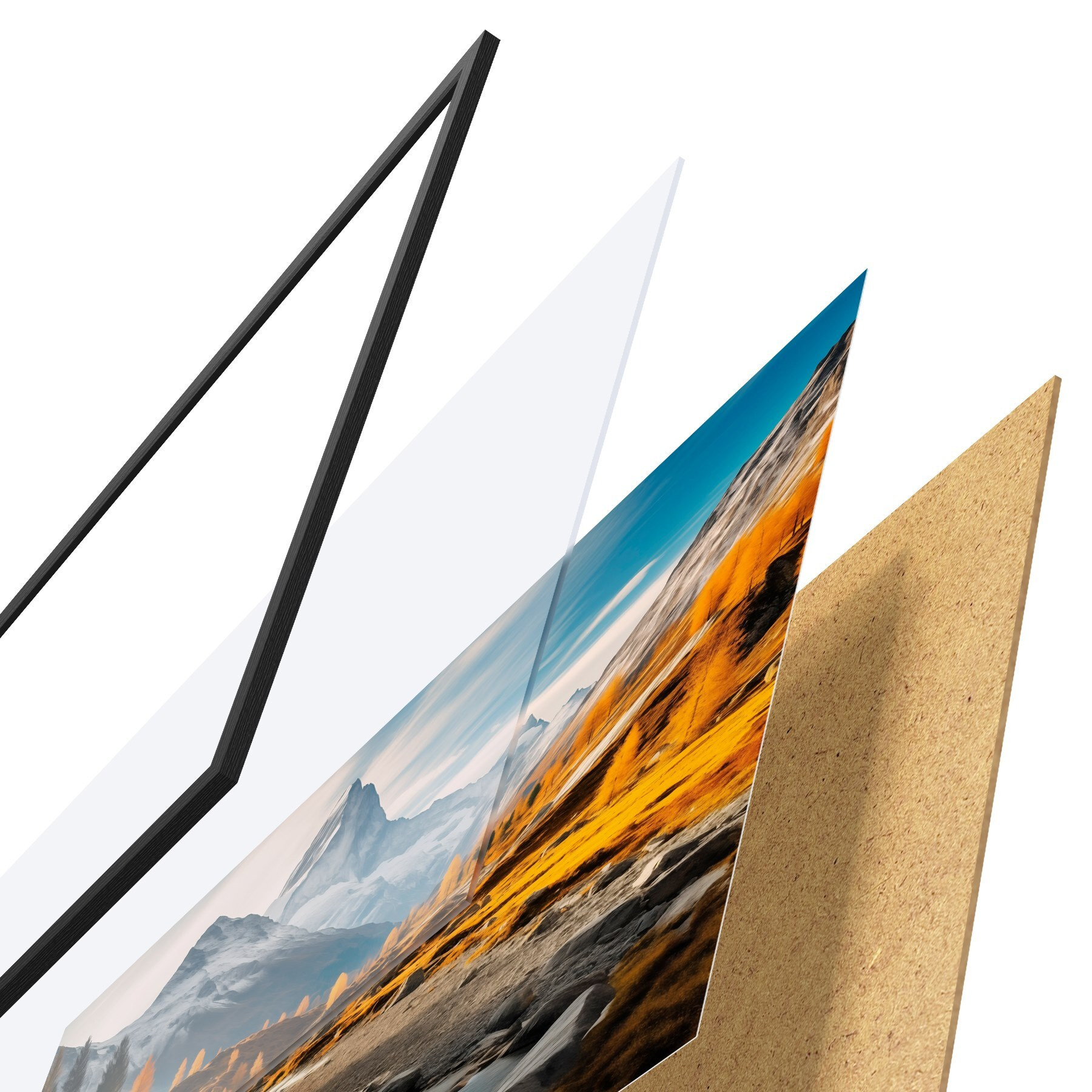 Plakatą sudaro rėmas, pleksiklas, atspausdintas vaizdas ir medžio drožlių plokštės pagrindas. Plakatą galima iš karto pakabinti ant sienos dėl kitoje pusėje esančių laikiklių.