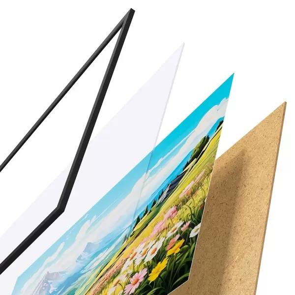 Plakatą sudaro rėmas, pleksiklas, atspausdintas vaizdas ir medžio drožlių plokštės pagrindas. Plakatą galima iš karto pakabinti ant sienos dėl kitoje pusėje esančių laikiklių.