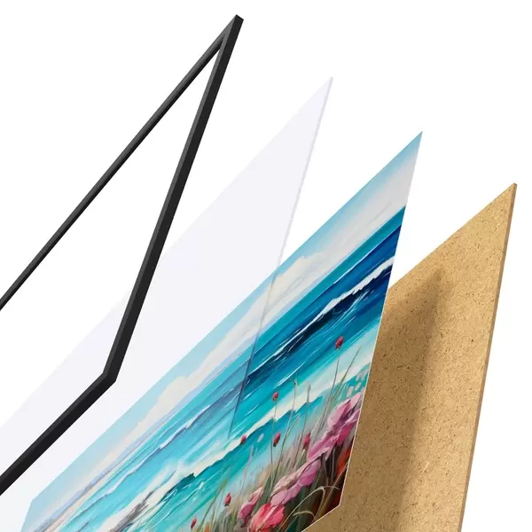 Plakatą sudaro rėmas, pleksiklas, atspausdintas vaizdas ir medžio drožlių plokštės pagrindas. Plakatą galima iš karto pakabinti ant sienos dėl kitoje pusėje esančių laikiklių.