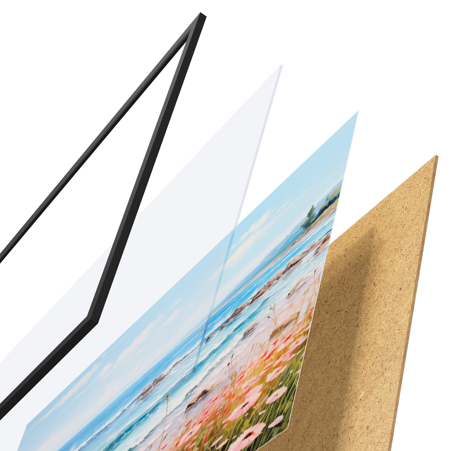 Plakatą sudaro rėmas, pleksiklas, atspausdintas vaizdas ir medžio drožlių plokštės pagrindas. Plakatą galima iš karto pakabinti ant sienos dėl kitoje pusėje esančių laikiklių.