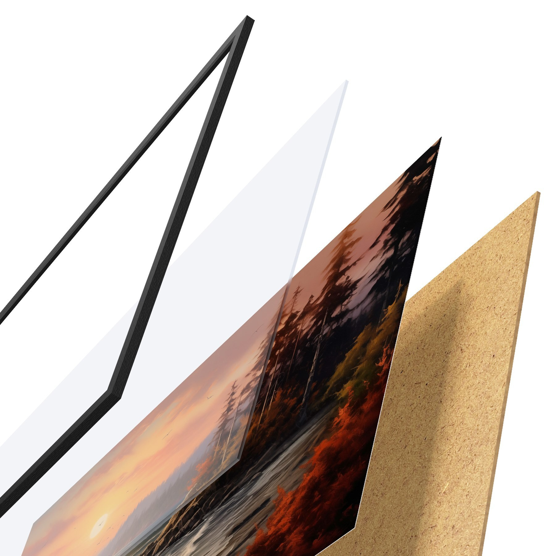 Plakatas Saulėlydis virš pajūrio su bangomis, pušynu ir rudens spalvomis pirmame plane. Ne f42571