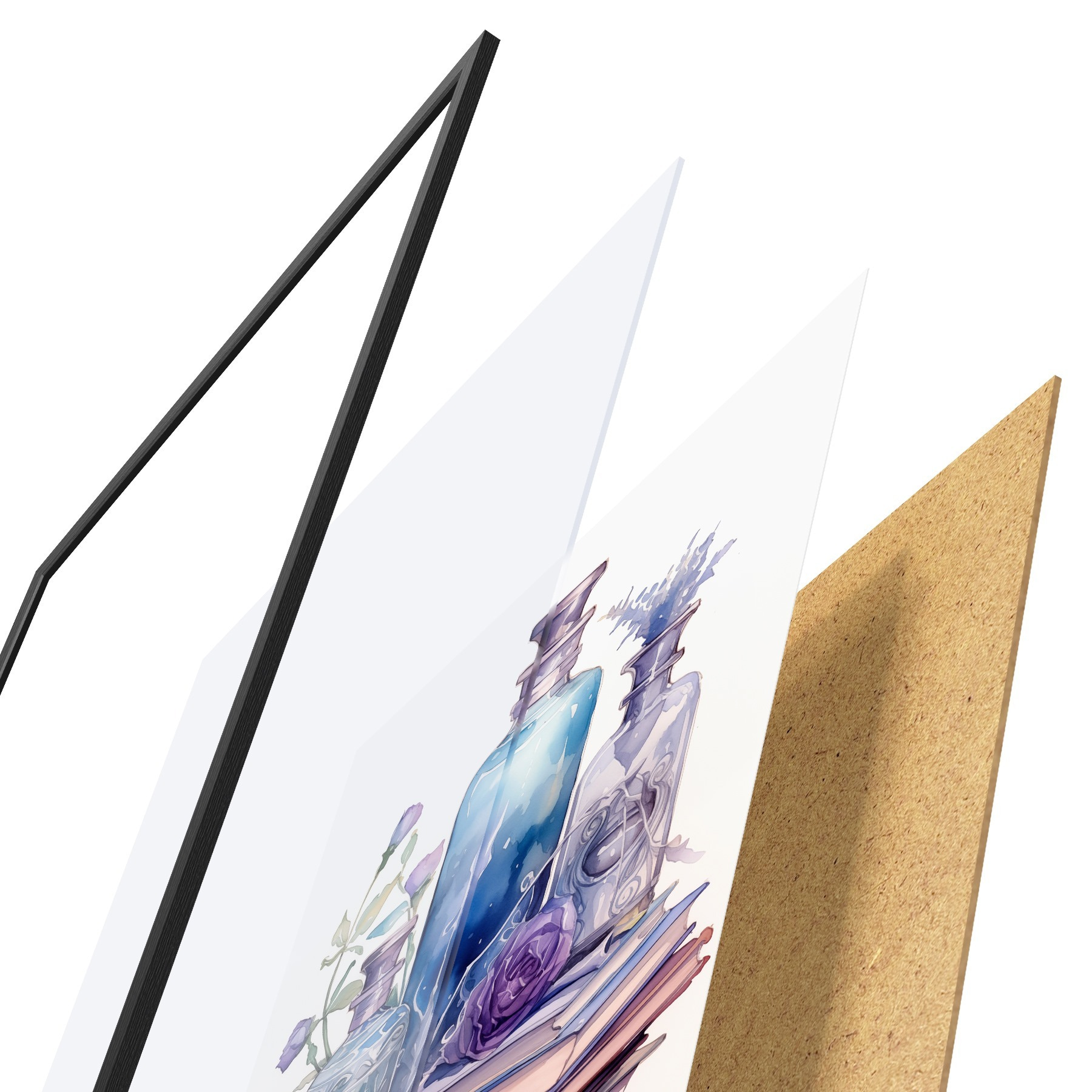 Plakatą sudaro rėmas, pleksiklas, atspausdintas vaizdas ir medžio drožlių plokštės pagrindas. Plakatą galima iš karto pakabinti ant sienos dėl kitoje pusėje esančių laikiklių.