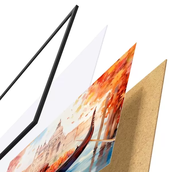 Plakatą sudaro rėmas, pleksiklas, atspausdintas vaizdas ir medžio drožlių plokštės pagrindas. Plakatą galima iš karto pakabinti ant sienos dėl kitoje pusėje esančių laikiklių.