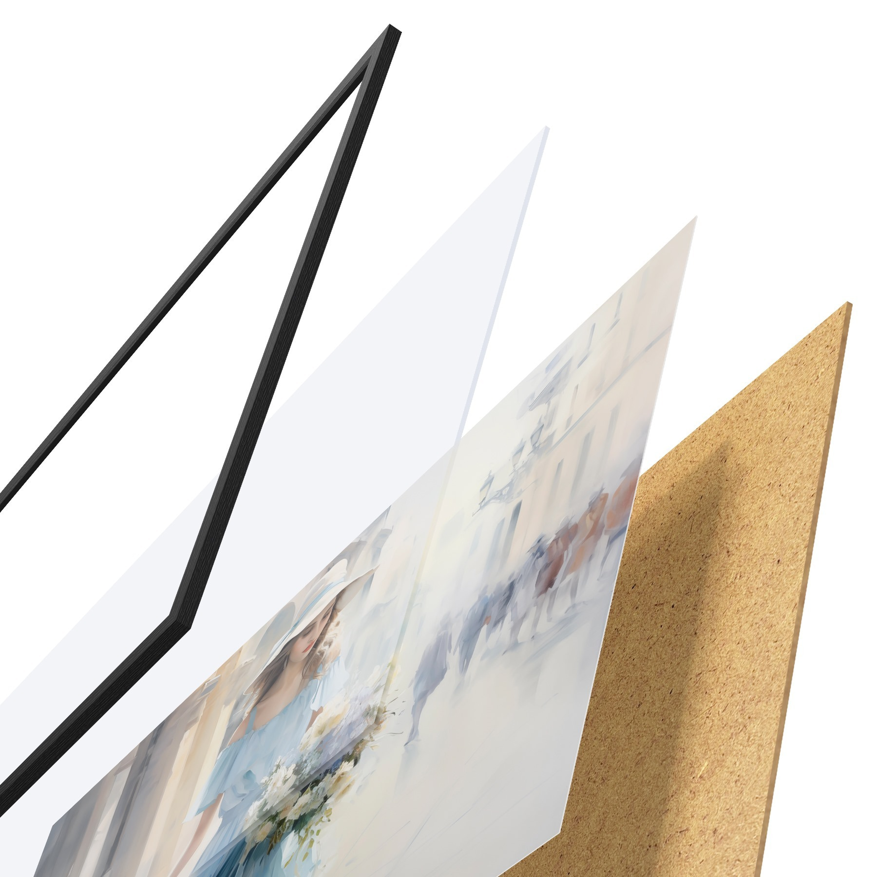 Plakatą sudaro rėmas, pleksiklas, atspausdintas vaizdas ir medžio drožlių plokštės pagrindas. Plakatą galima iš karto pakabinti ant sienos dėl kitoje pusėje esančių laikiklių.