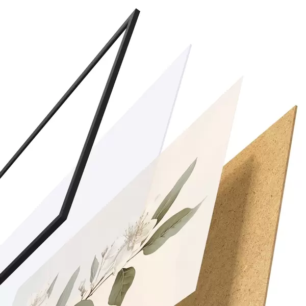 Plakatą sudaro rėmas, pleksiklas, atspausdintas vaizdas ir medžio drožlių plokštės pagrindas. Plakatą galima iš karto pakabinti ant sienos dėl kitoje pusėje esančių laikiklių.