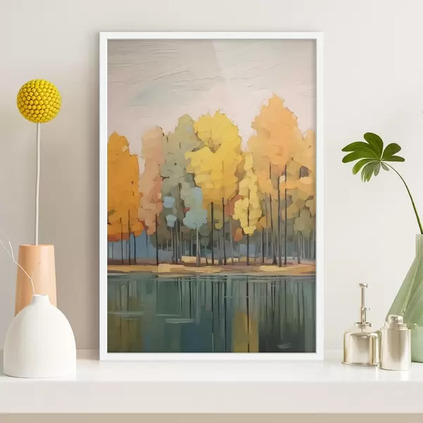 Plakatas Rudens giraitė prie tvenkinio imituoja tapybą f42586