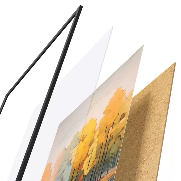 Plakatą sudaro rėmas, pleksiklas, atspausdintas vaizdas ir medžio drožlių plokštės pagrindas. Plakatą galima iš karto pakabinti ant sienos dėl kitoje pusėje esančių laikiklių.