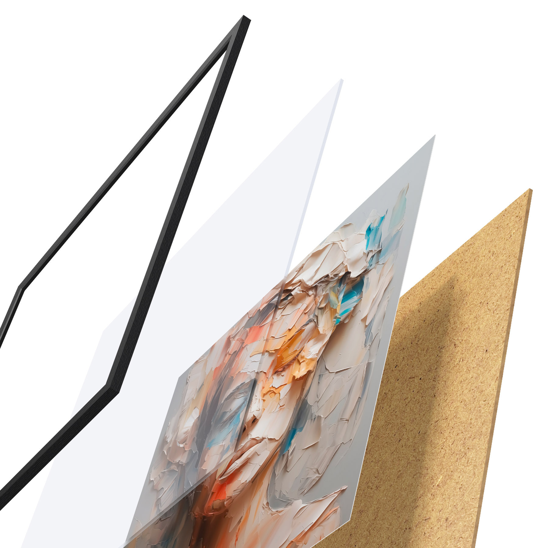 Plakatą sudaro rėmas, pleksiklas, atspausdintas vaizdas ir medžio drožlių plokštės pagrindas. Plakatą galima iš karto pakabinti ant sienos dėl kitoje pusėje esančių laikiklių.