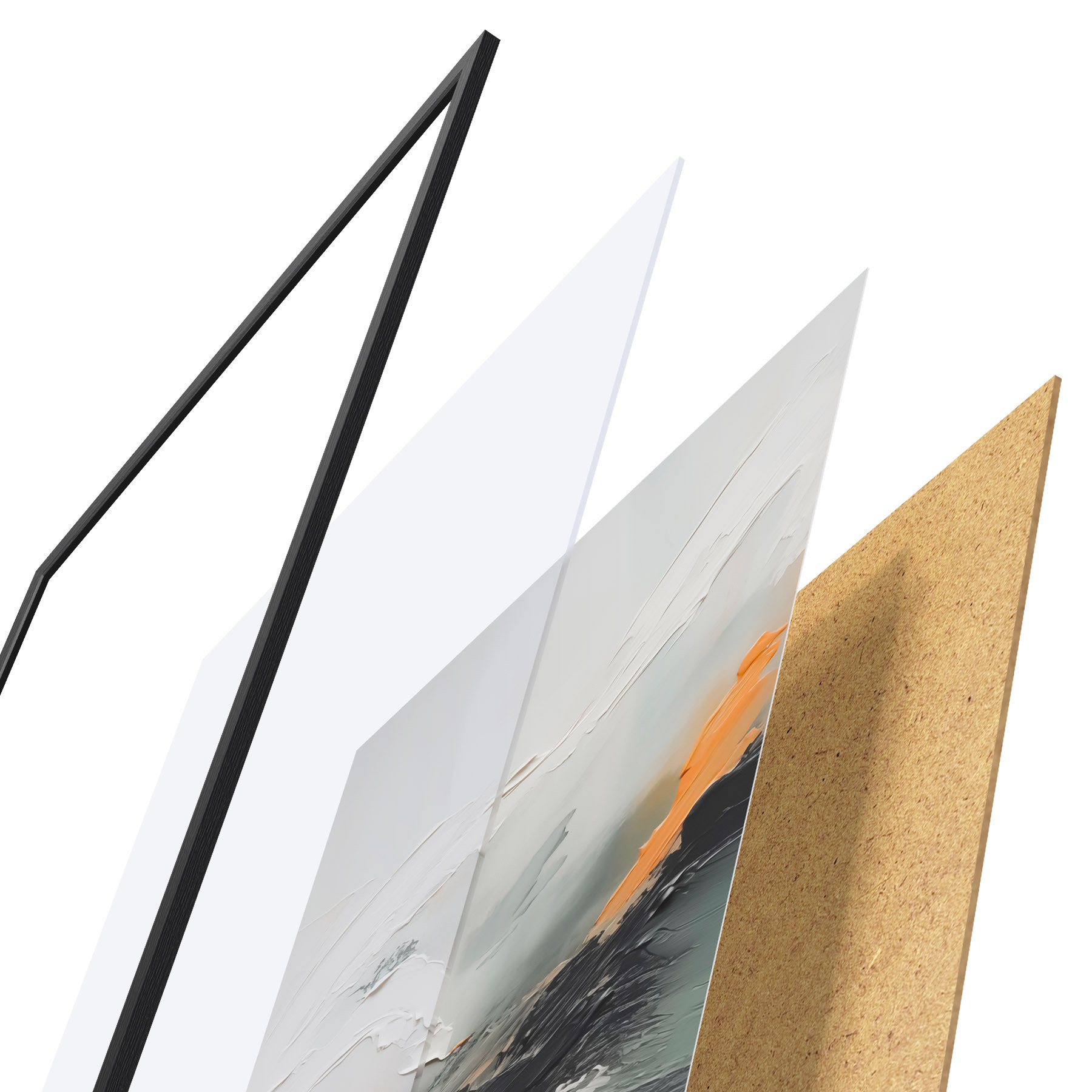 Plakatą sudaro rėmas, pleksiklas, atspausdintas vaizdas ir medžio drožlių plokštės pagrindas. Plakatą galima iš karto pakabinti ant sienos dėl kitoje pusėje esančių laikiklių.