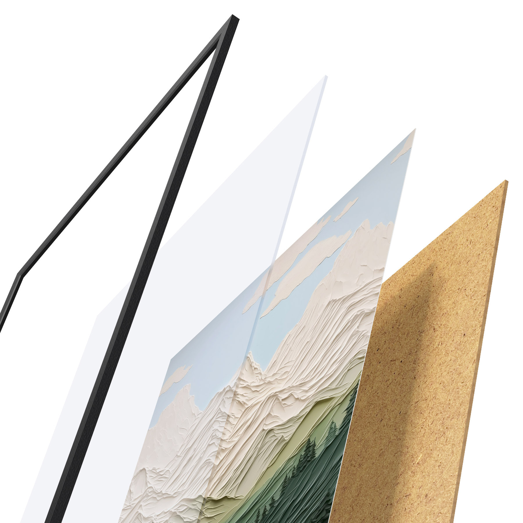 Plakatą sudaro rėmas, pleksiklas, atspausdintas vaizdas ir medžio drožlių plokštės pagrindas. Plakatą galima iš karto pakabinti ant sienos dėl kitoje pusėje esančių laikiklių.