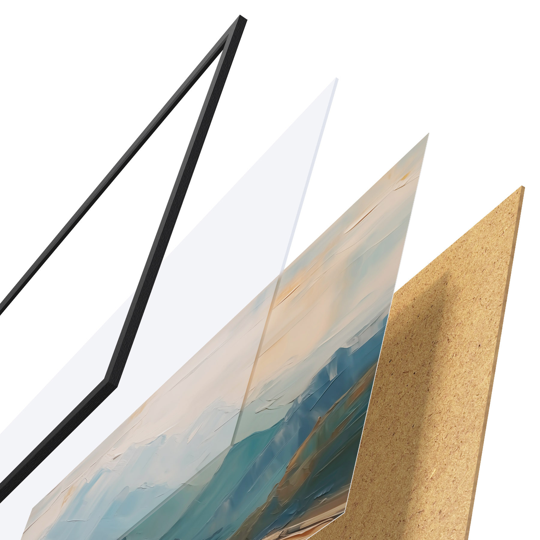 Plakatą sudaro rėmas, pleksiklas, atspausdintas vaizdas ir medžio drožlių plokštės pagrindas. Plakatą galima iš karto pakabinti ant sienos dėl kitoje pusėje esančių laikiklių.