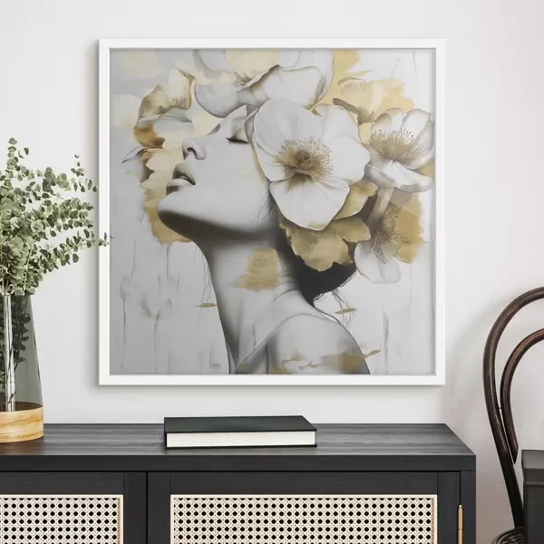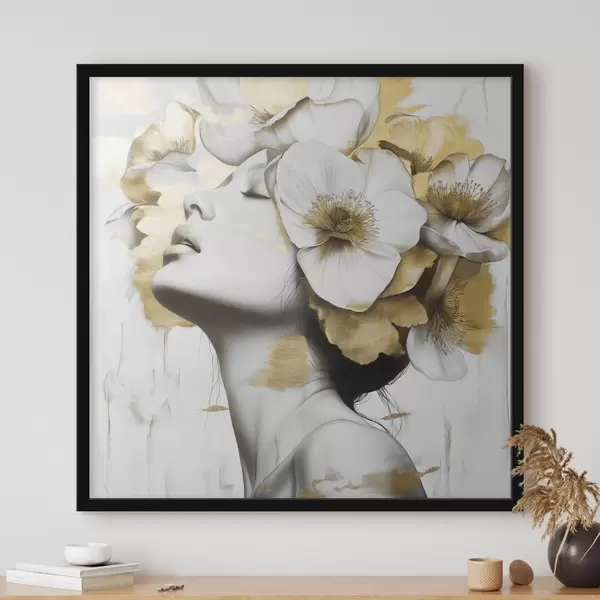 Plakatas Mergaitė su gėlėmis ant galvos f42606