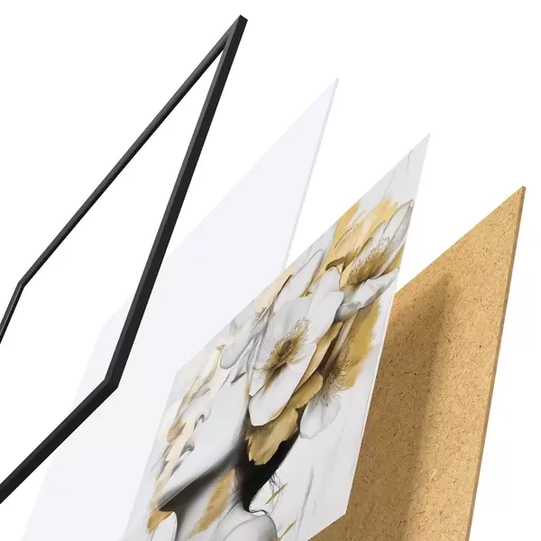 Plakatą sudaro rėmas, pleksiklas, atspausdintas vaizdas ir medžio drožlių plokštės pagrindas. Plakatą galima iš karto pakabinti ant sienos dėl kitoje pusėje esančių laikiklių.