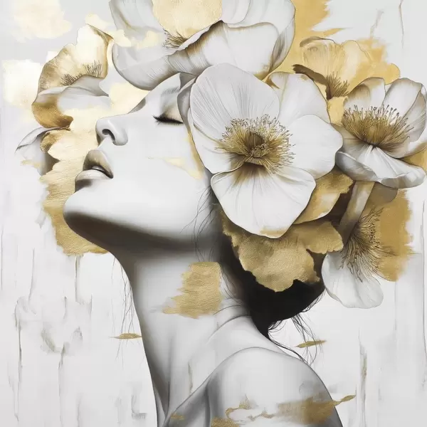 Plakatas Mergaitė su gėlėmis ant galvos f42606