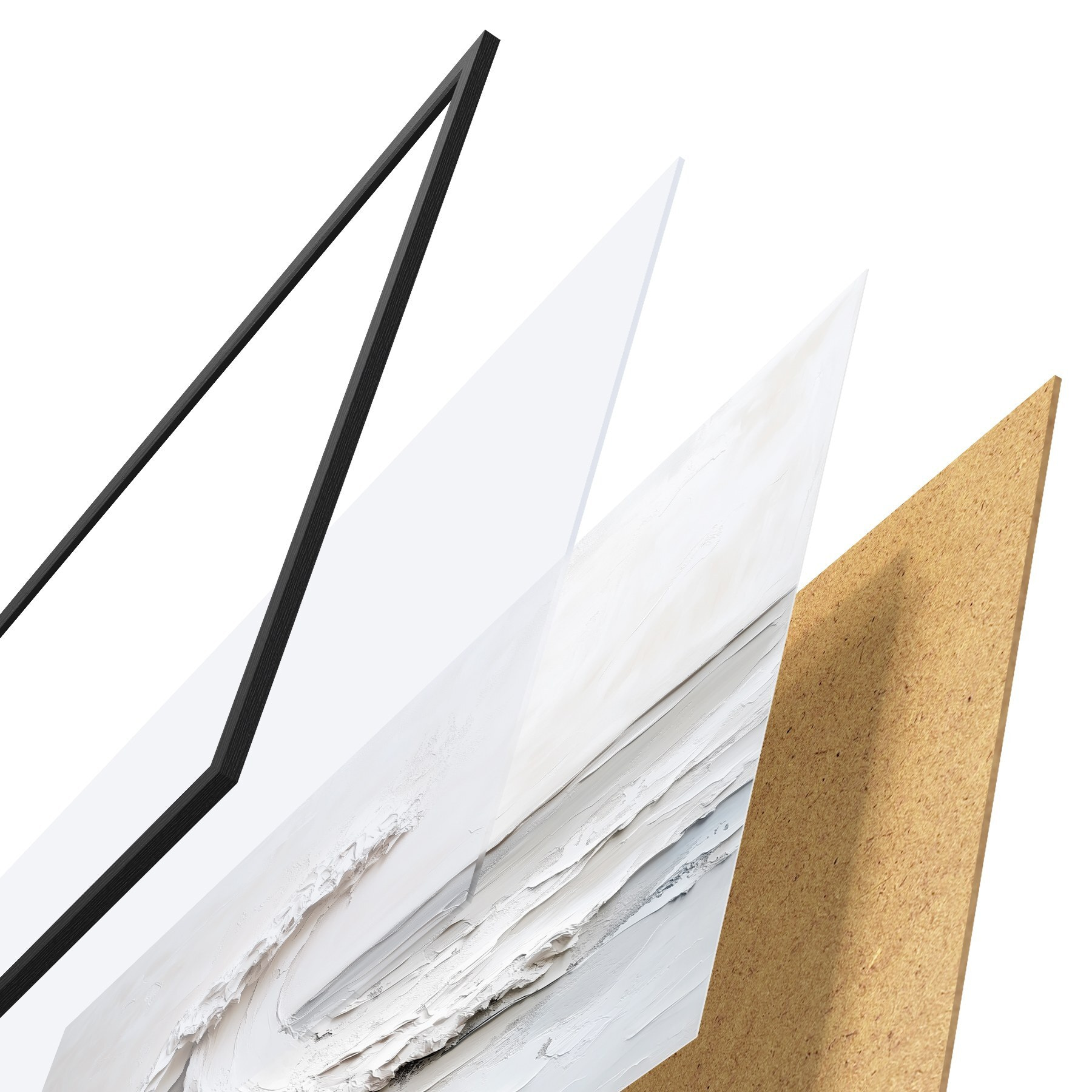 Plakatą sudaro rėmas, pleksiklas, atspausdintas vaizdas ir medžio drožlių plokštės pagrindas. Plakatą galima iš karto pakabinti ant sienos dėl kitoje pusėje esančių laikiklių.