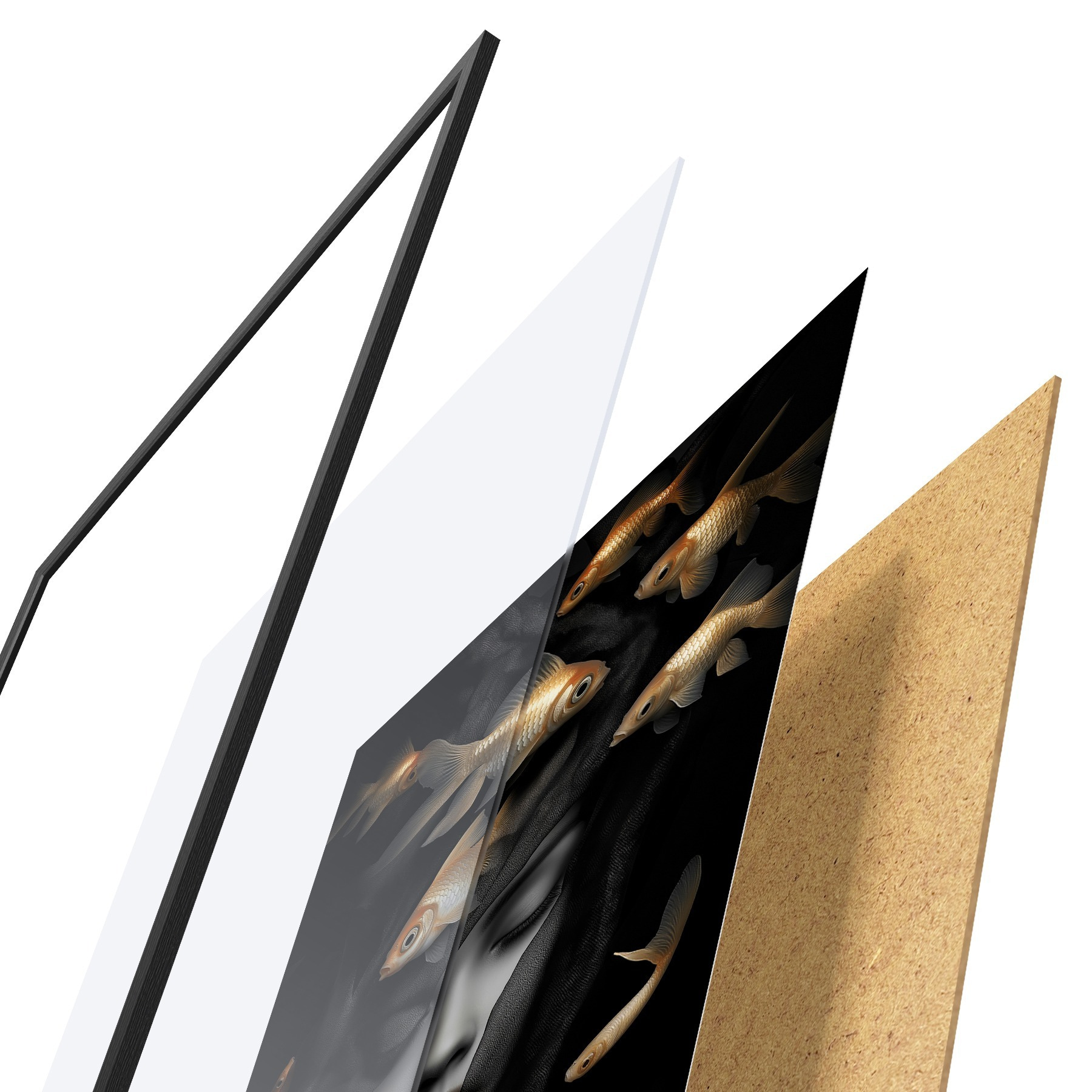 Plakatą sudaro rėmas, pleksiklas, atspausdintas vaizdas ir medžio drožlių plokštės pagrindas. Plakatą galima iš karto pakabinti ant sienos dėl kitoje pusėje esančių laikiklių.