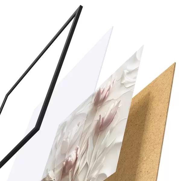 Plakatą sudaro rėmas, pleksiklas, atspausdintas vaizdas ir medžio drožlių plokštės pagrindas. Plakatą galima iš karto pakabinti ant sienos dėl kitoje pusėje esančių laikiklių.
