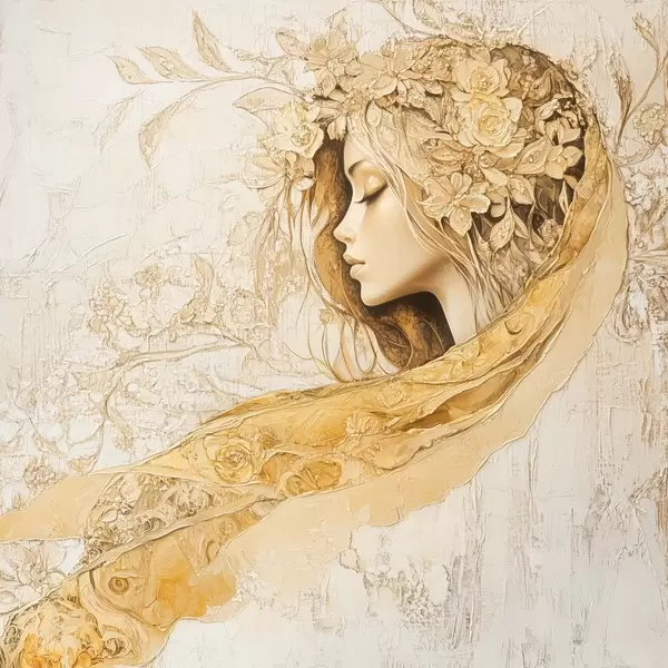 Plakatas Švelni mergaitė aliejinės tapybos su gėlėmis stiliumi f42616