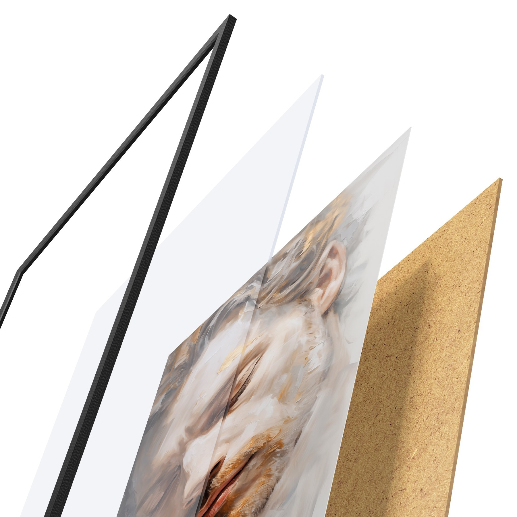 Plakatą sudaro rėmas, pleksiklas, atspausdintas vaizdas ir medžio drožlių plokštės pagrindas. Plakatą galima iš karto pakabinti ant sienos dėl kitoje pusėje esančių laikiklių.