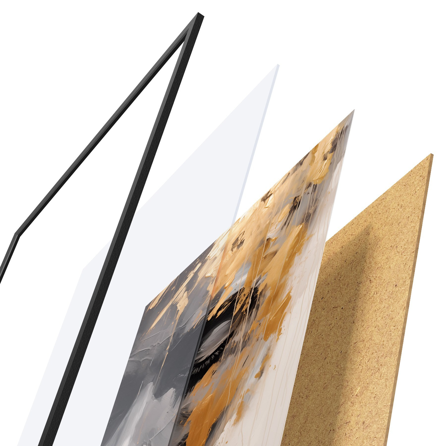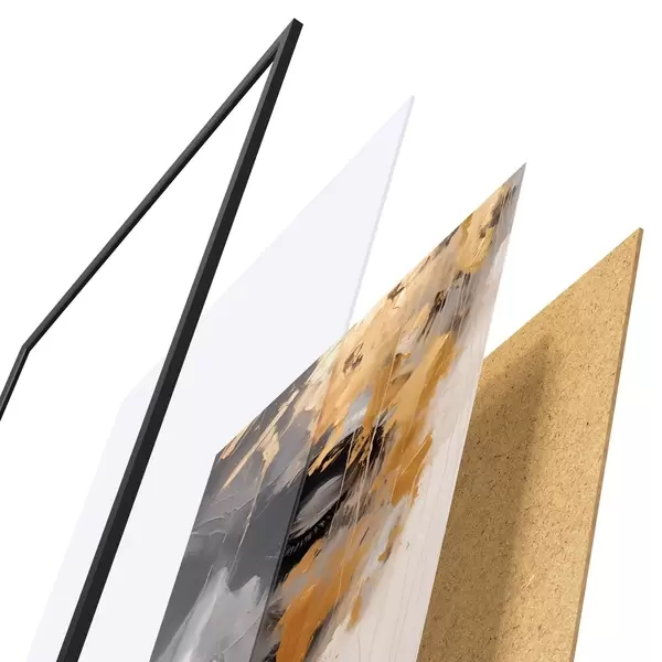 Plakatą sudaro rėmas, pleksiklas, atspausdintas vaizdas ir medžio drožlių plokštės pagrindas. Plakatą galima iš karto pakabinti ant sienos dėl kitoje pusėje esančių laikiklių.