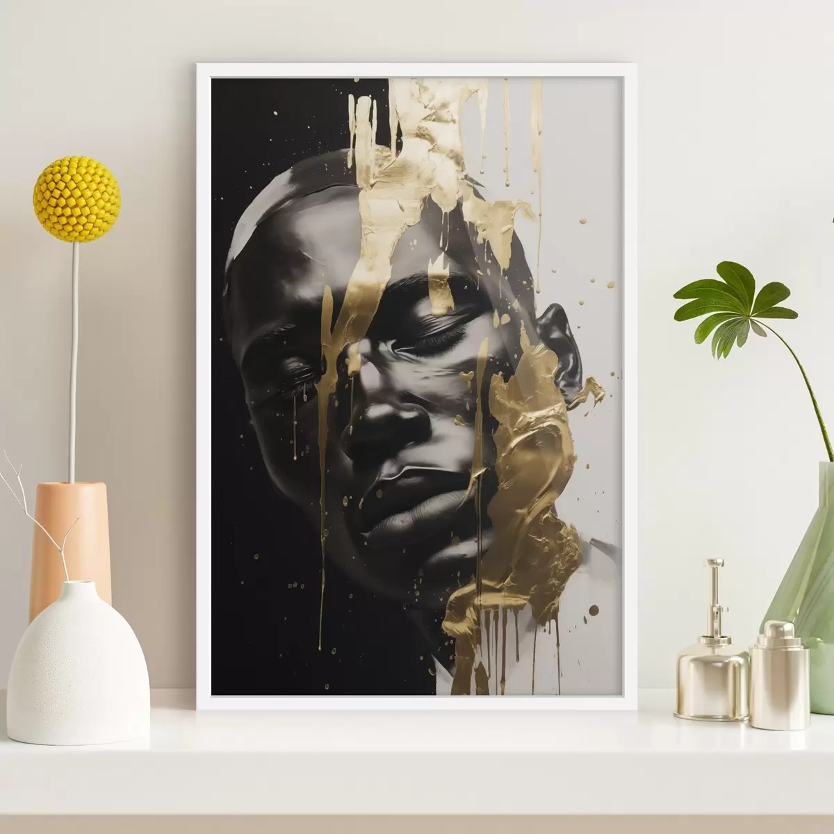 Plakatas Abstraktus vyro portretas sklandžiais juodai baltais tonais, išryškintais ryškiais šiltų spalvų potėpiais, sukuriančiais dinamišką efektą. Ne f42623
