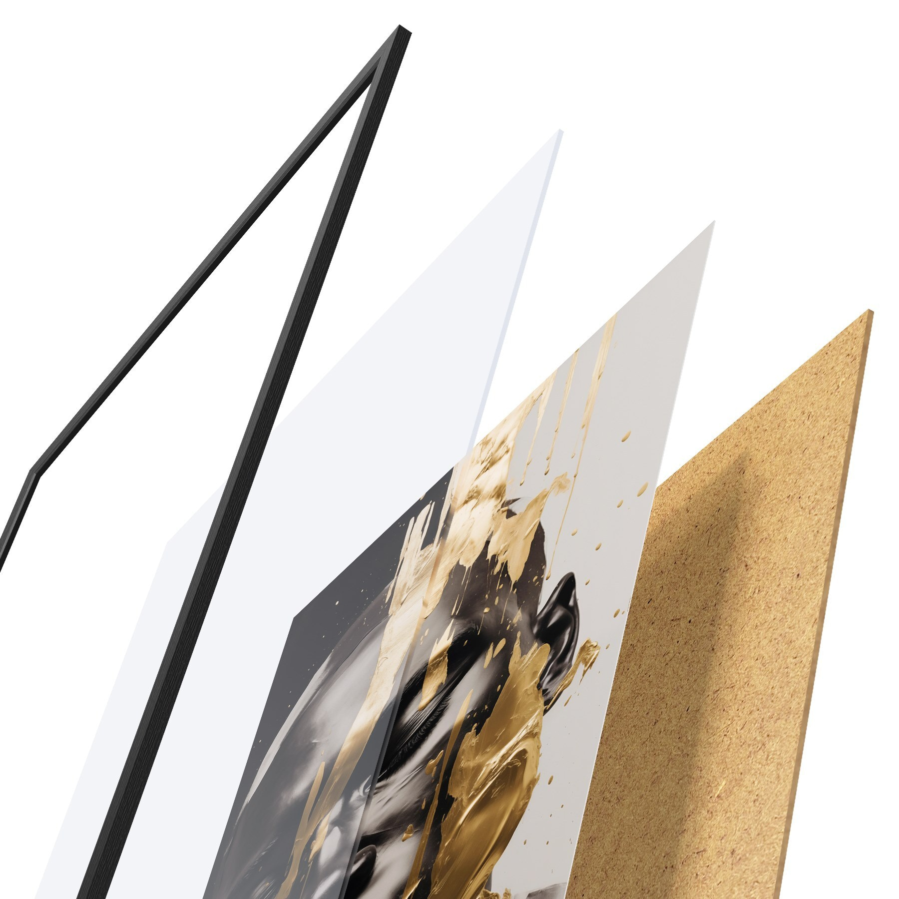 Plakatą sudaro rėmas, pleksiklas, atspausdintas vaizdas ir medžio drožlių plokštės pagrindas. Plakatą galima iš karto pakabinti ant sienos dėl kitoje pusėje esančių laikiklių.