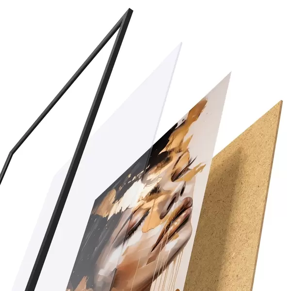 Plakatą sudaro rėmas, pleksiklas, atspausdintas vaizdas ir medžio drožlių plokštės pagrindas. Plakatą galima iš karto pakabinti ant sienos dėl kitoje pusėje esančių laikiklių.