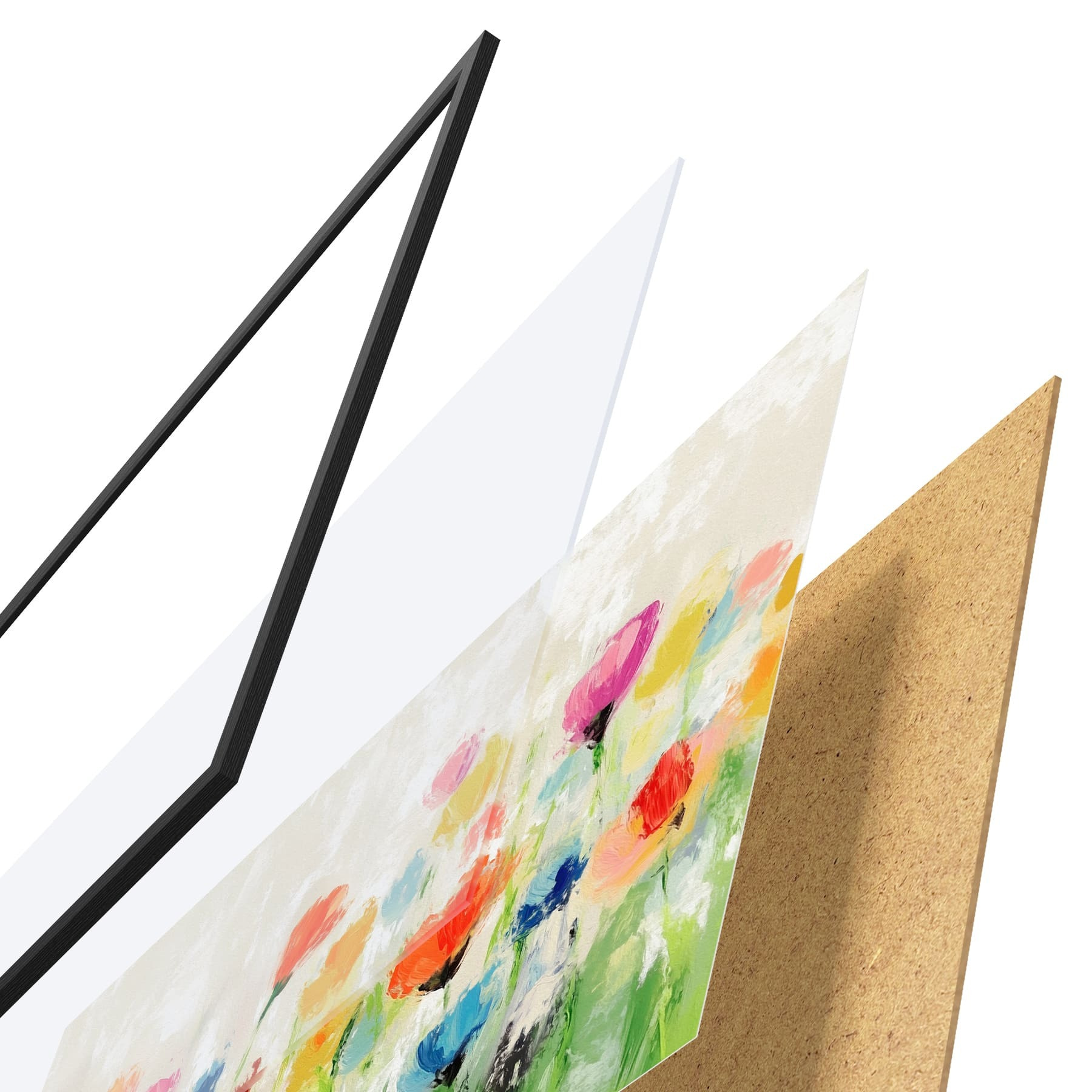 Plakatą sudaro rėmas, pleksiklas, atspausdintas vaizdas ir medžio drožlių plokštės pagrindas. Plakatą galima iš karto pakabinti ant sienos dėl kitoje pusėje esančių laikiklių.
