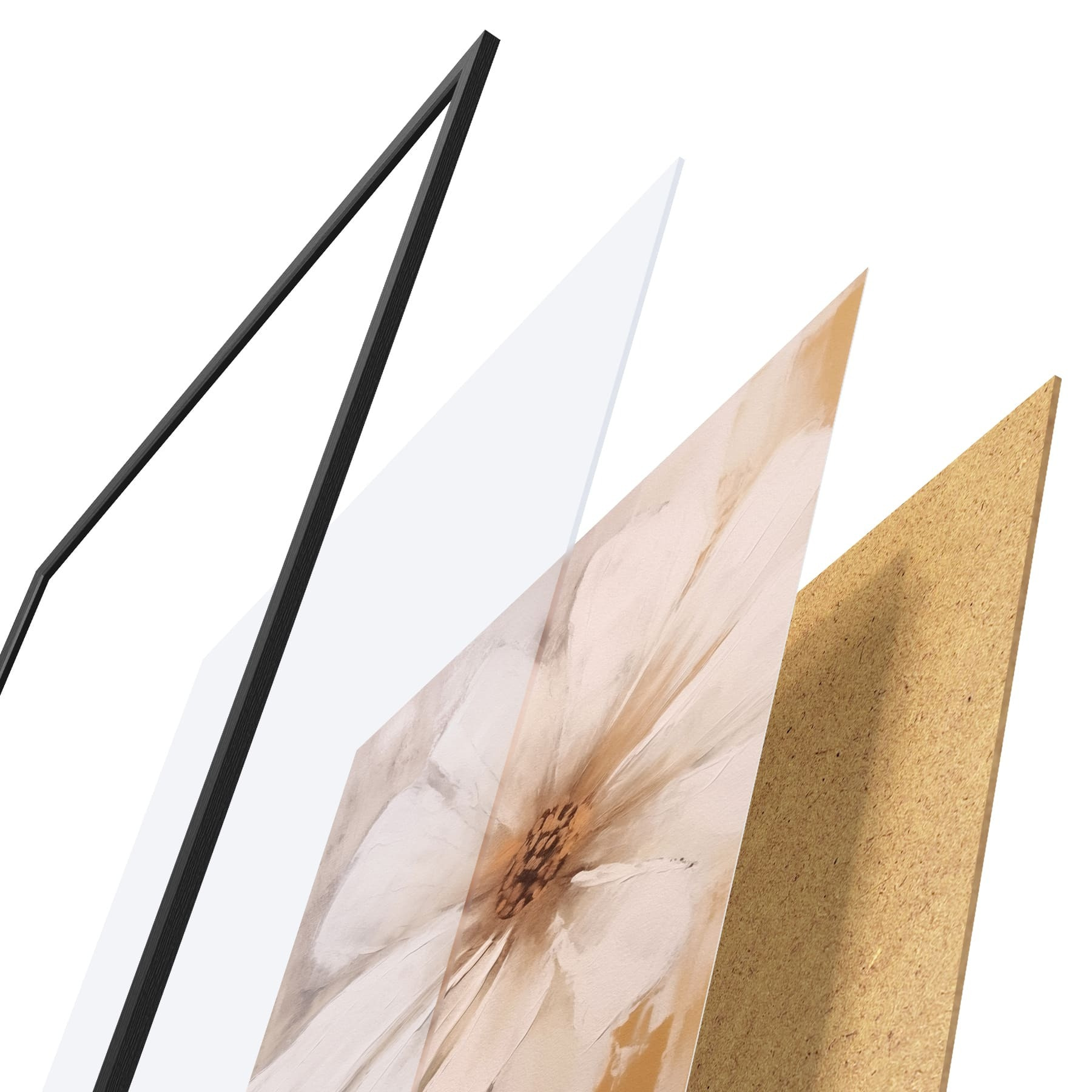 Plakatą sudaro rėmas, pleksiklas, atspausdintas vaizdas ir medžio drožlių plokštės pagrindas. Plakatą galima iš karto pakabinti ant sienos dėl kitoje pusėje esančių laikiklių.