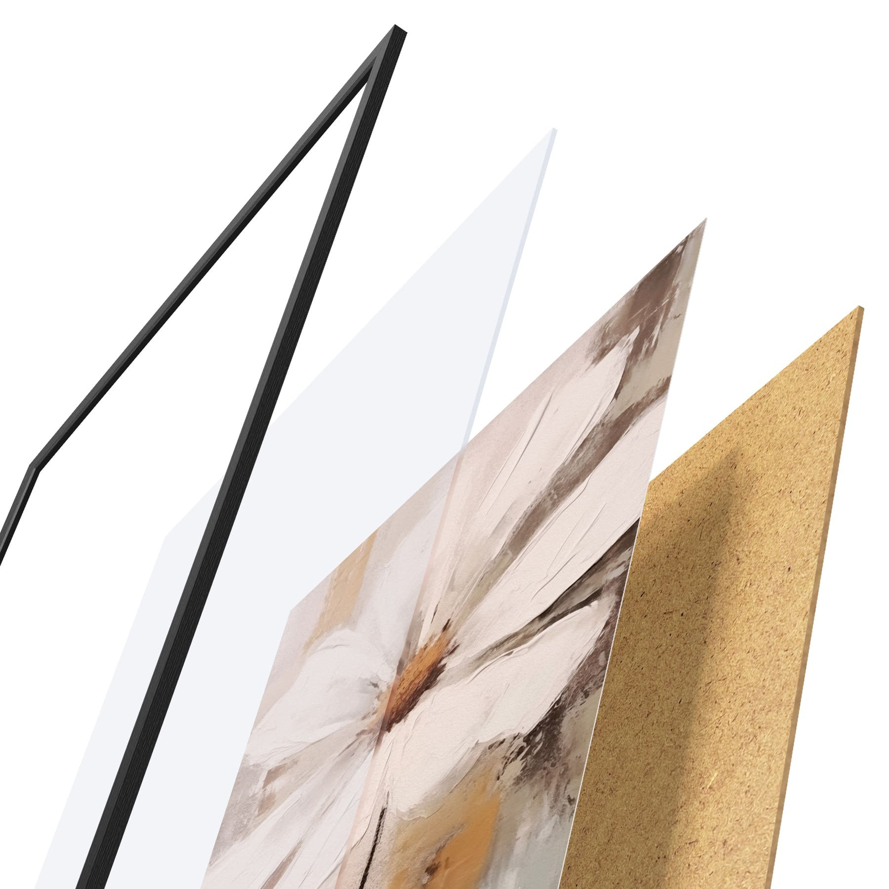 Plakatą sudaro rėmas, pleksiklas, atspausdintas vaizdas ir medžio drožlių plokštės pagrindas. Plakatą galima iš karto pakabinti ant sienos dėl kitoje pusėje esančių laikiklių.