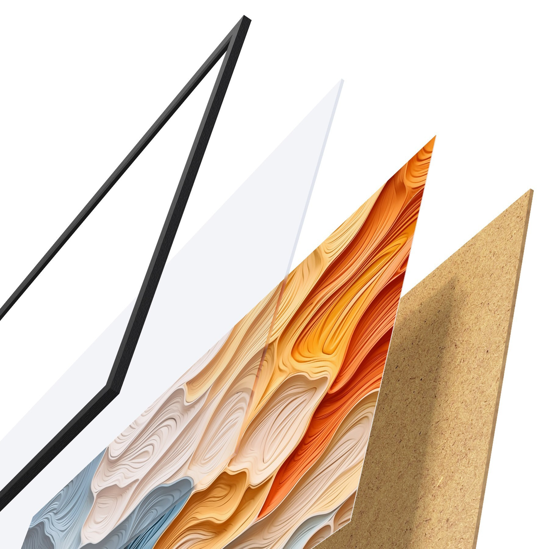 Plakatą sudaro rėmas, pleksiklas, atspausdintas vaizdas ir medžio drožlių plokštės pagrindas. Plakatą galima iš karto pakabinti ant sienos dėl kitoje pusėje esančių laikiklių.