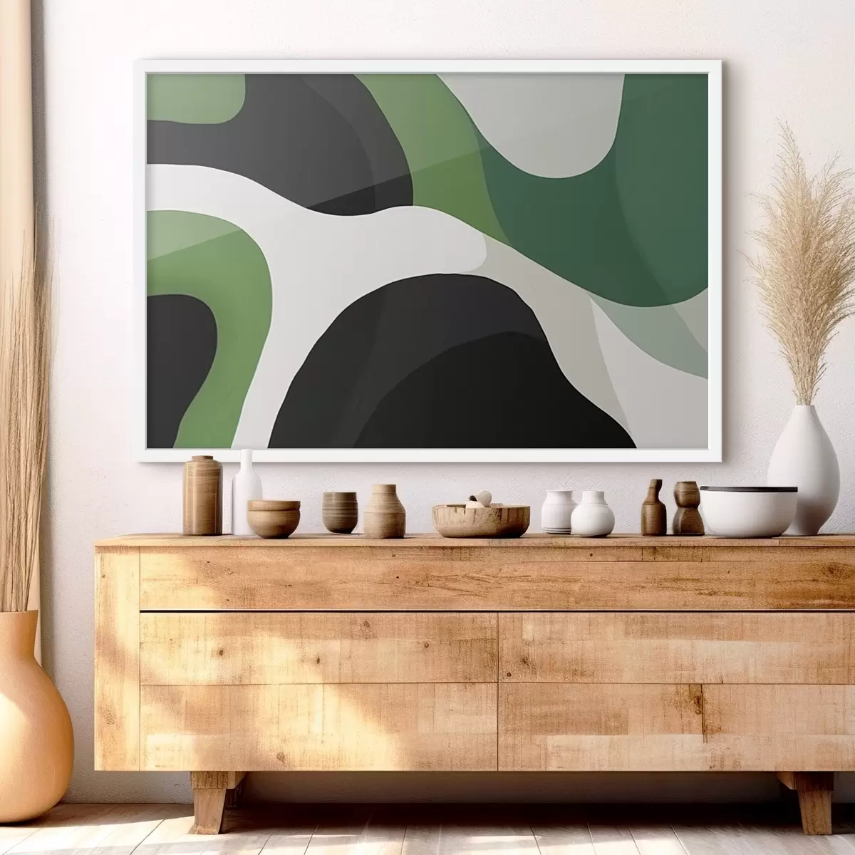 Plakatas Abstraktus geometrinis raštas žaliais ir juodais tonais f42651