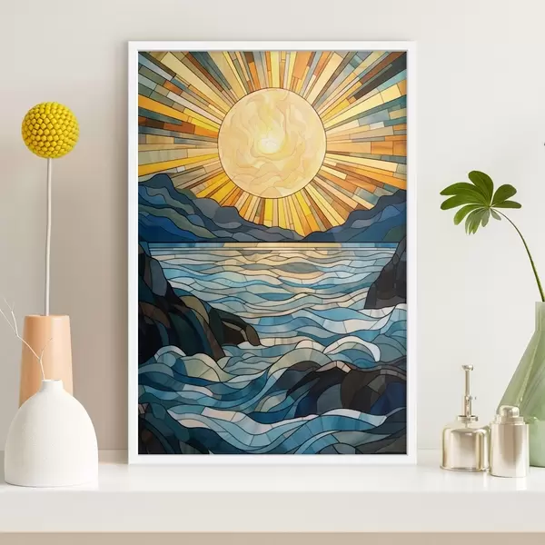 Plakatas Vitražo stiliaus saulė ir bangos f42654