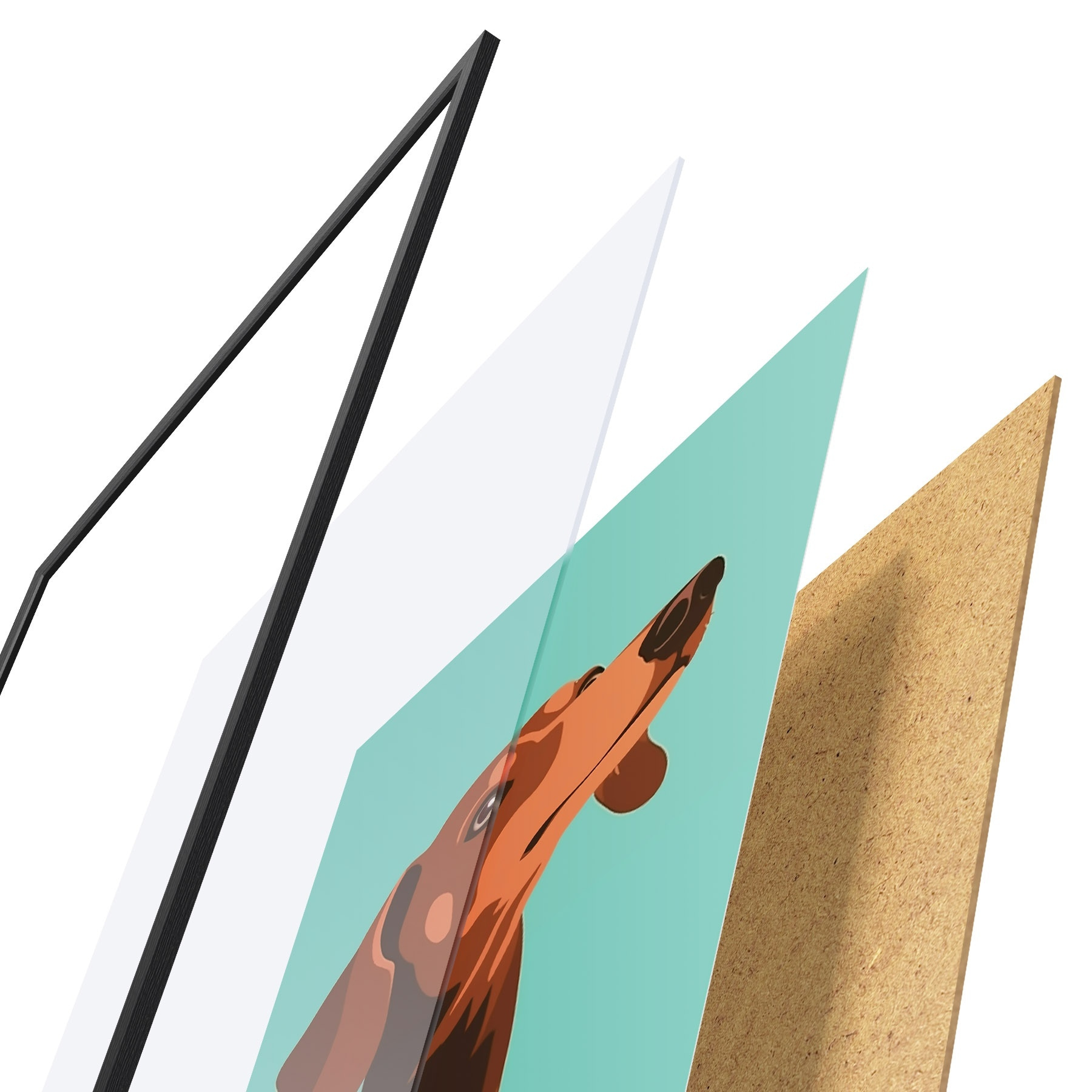 Plakatą sudaro rėmas, pleksiklas, atspausdintas vaizdas ir medžio drožlių plokštės pagrindas. Plakatą galima iš karto pakabinti ant sienos dėl kitoje pusėje esančių laikiklių.