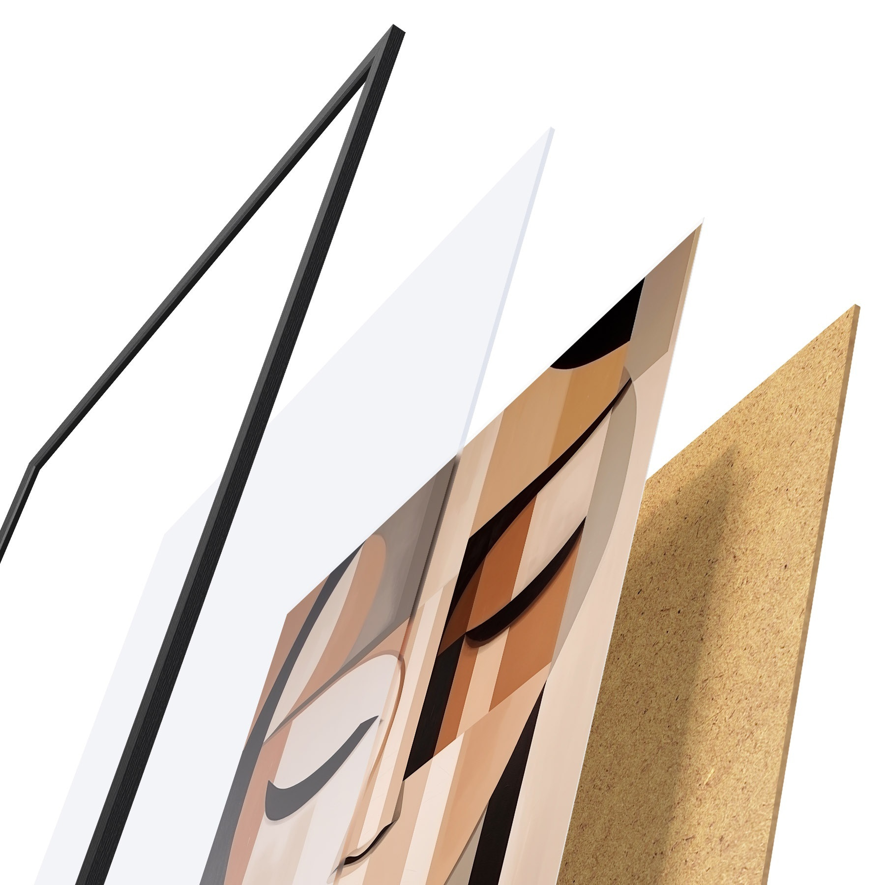 Plakatą sudaro rėmas, pleksiklas, atspausdintas vaizdas ir medžio drožlių plokštės pagrindas. Plakatą galima iš karto pakabinti ant sienos dėl kitoje pusėje esančių laikiklių.