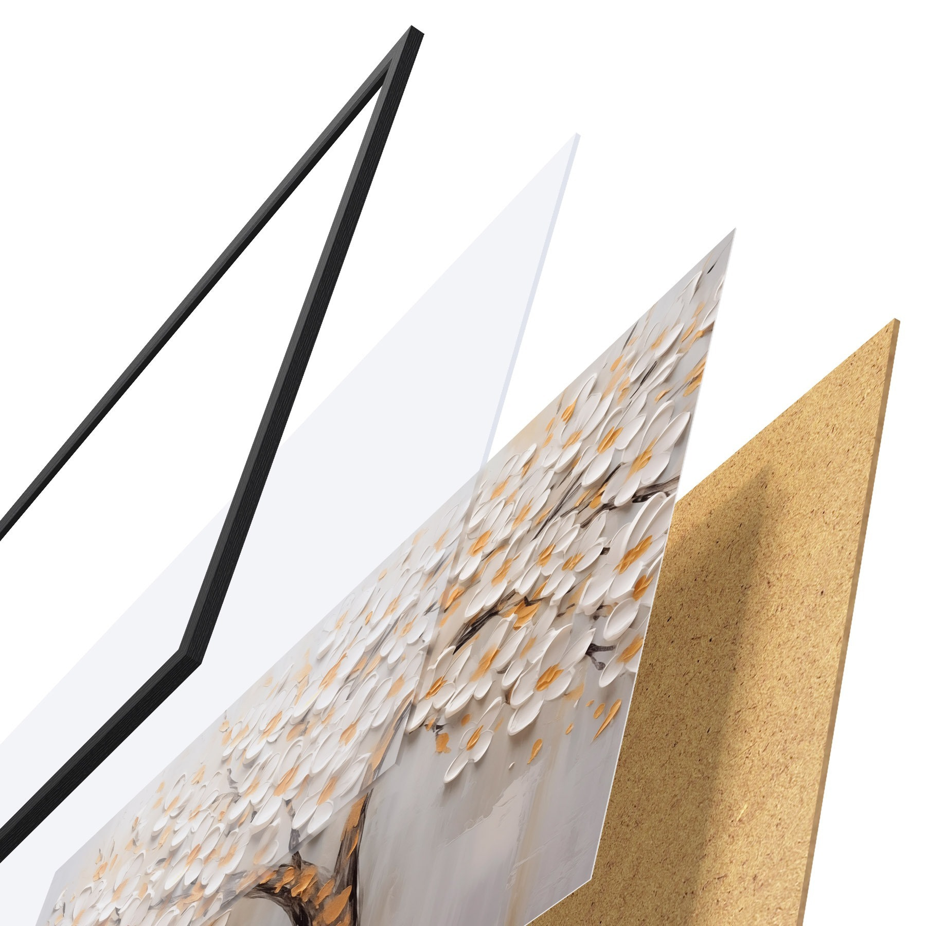 Plakatą sudaro rėmas, pleksiklas, atspausdintas vaizdas ir medžio drožlių plokštės pagrindas. Plakatą galima iš karto pakabinti ant sienos dėl kitoje pusėje esančių laikiklių.